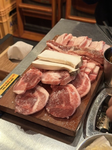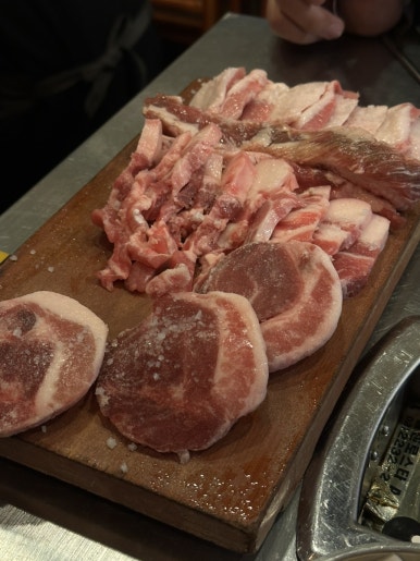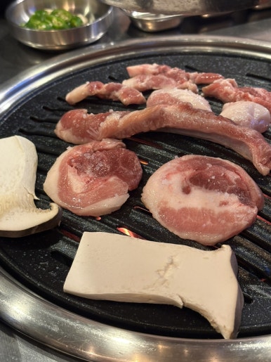 옆 테이블에서 두툼목살 구워 먹는 거 보고